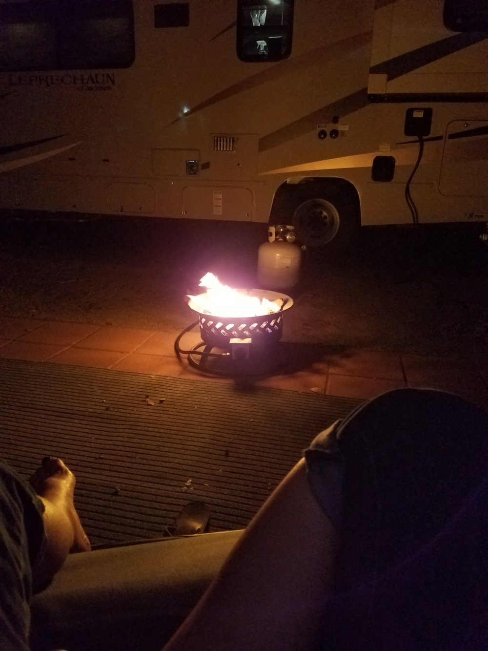 So we got set up, met our neighbors Tom and Christine and are settling in. It’s a nice place,friendly people .We spent the late afternoon at their campsite because we apparently have the only site with no shade!