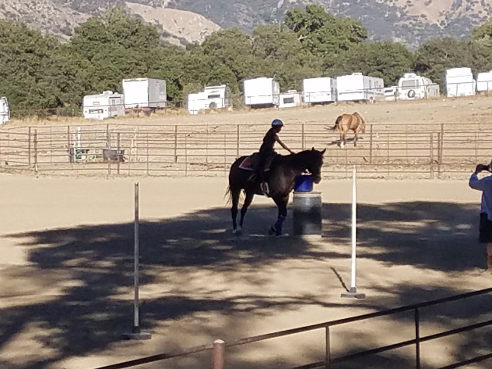 We arrived at Thousand Trails Rancho Oso at about 12:30, found a spot and set up the trailer. It is beautifully set in the hills between Santa Barbara and Solvang, near the Santa Ynez River (which is dry) It’s a unique place where you can of course bring your pets, but you can also bring your horse! And here’s the real surprise…. lots of people being their horse. Luckily they have their own area and were not camped next to horses!