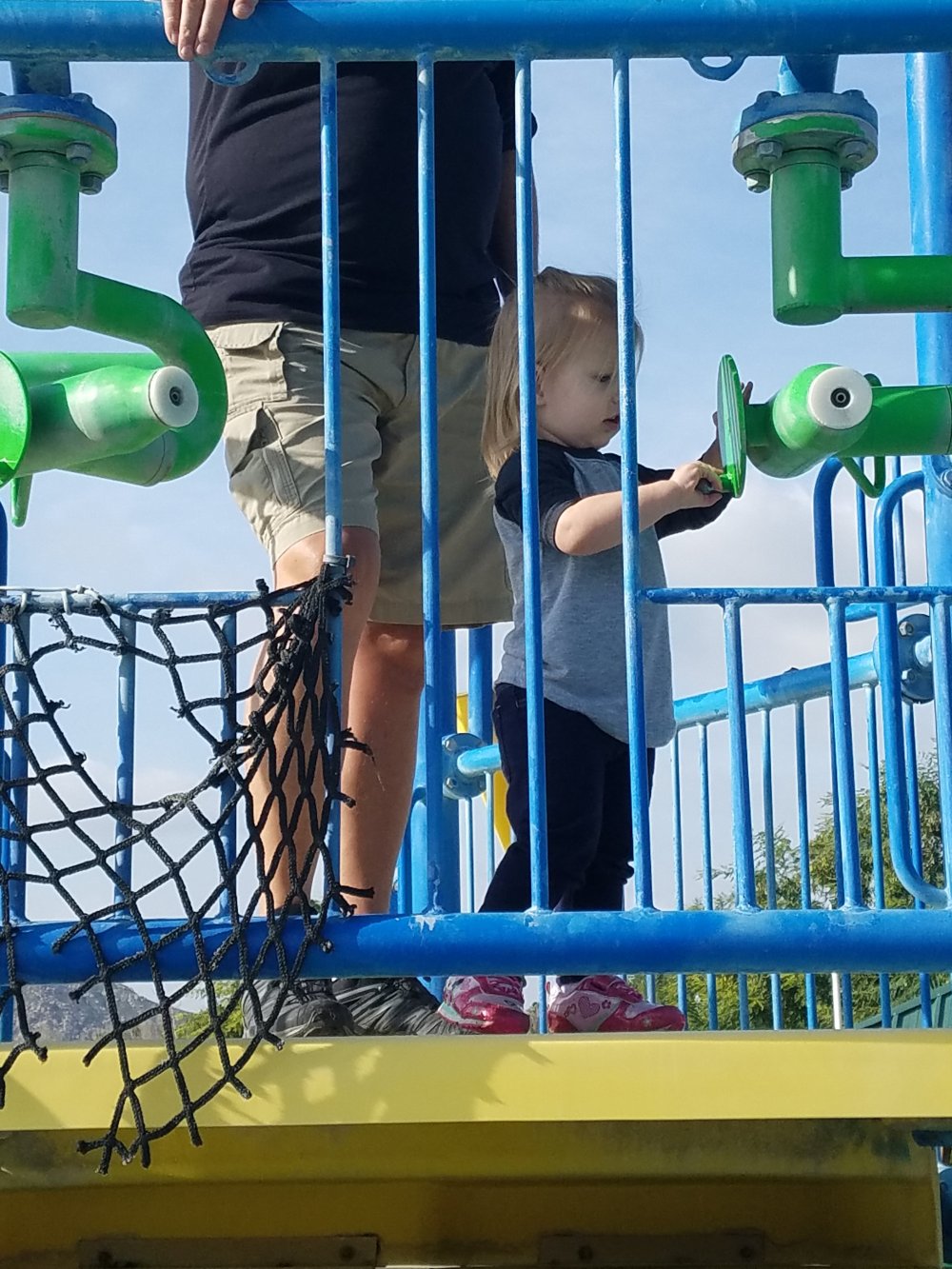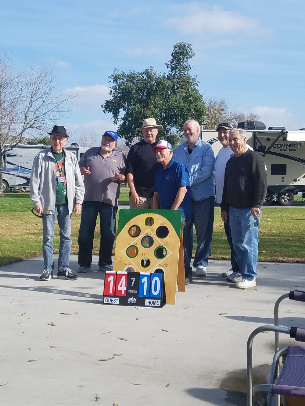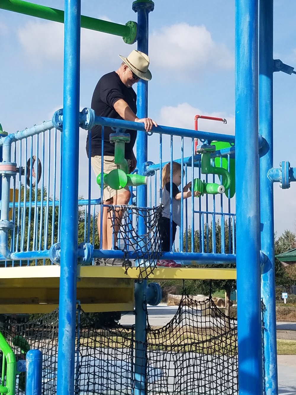 On Friday we visited with the other campers and went to the playground. The playground is actually a water park with the water turned off, so Peyton could play on the climbing structures. We played a great game of beanbag baseball, men against women and the guys won. I guess it’s been a long time since they won…was it me?