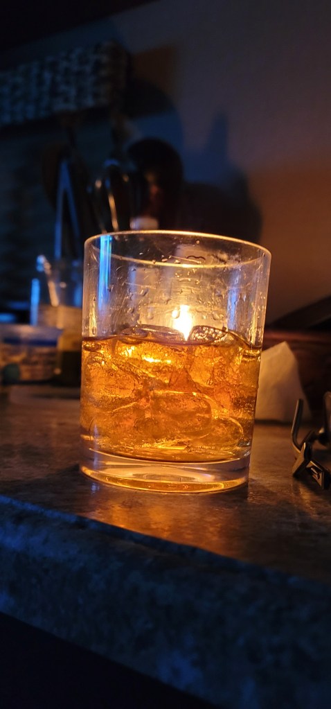 - Pour two cocktails – Martini for Tom / Whiskey for me