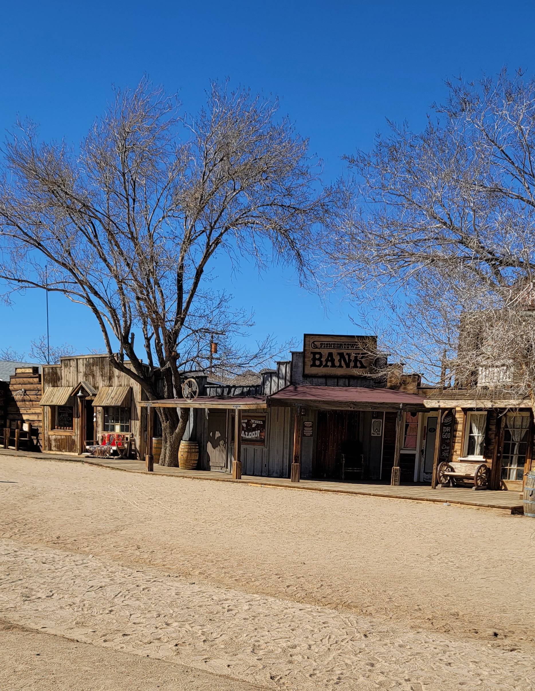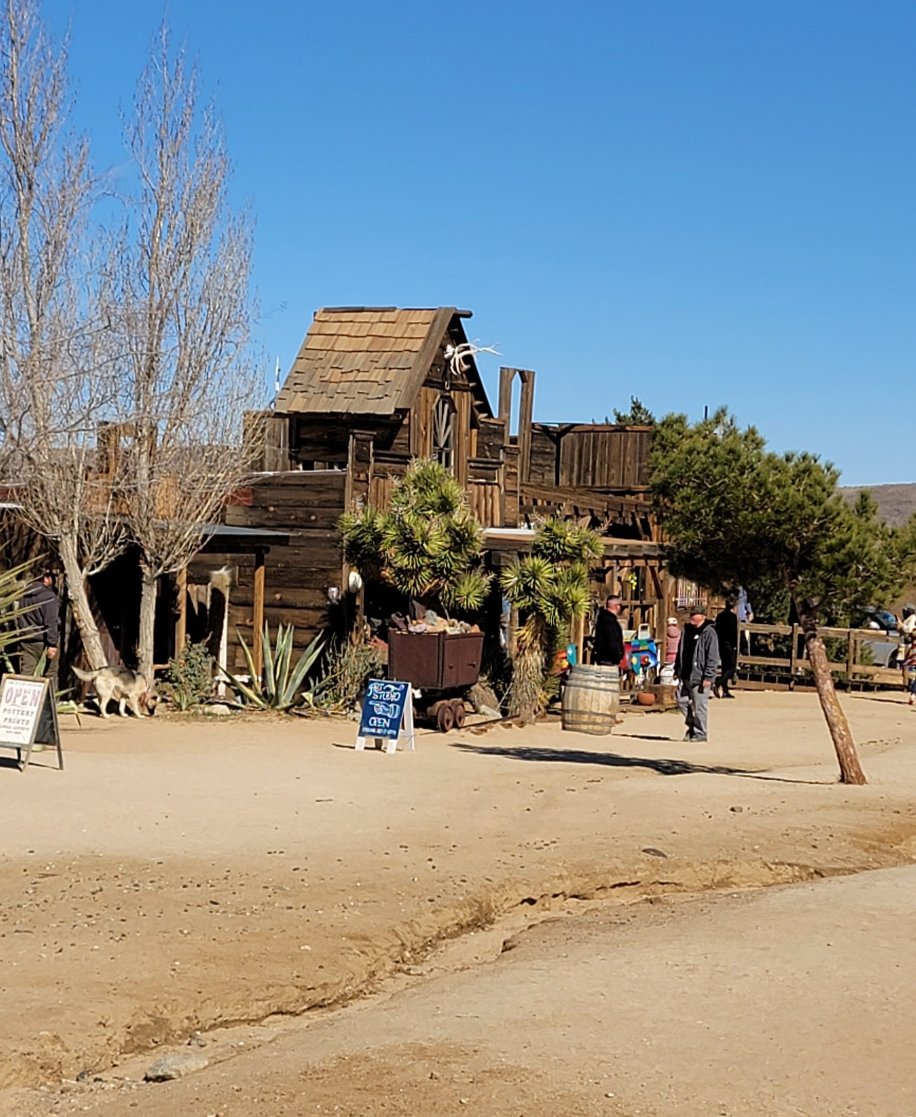We had planned to go hiking in Joshua Tree National Park on Friday, but I was not feeling well, so we just hung around camp. By afternoon I was feeling better and we took a drive to Pioneer Town, which is about a 30 minute away in Yucca. Pioneer Town was a movie lot with lots of old west buildings. It was created in 1946 with dreams of creating a living movie set – and 1870s frontier town with facades for filming and interiors open to he public. Now although it is just a tourist stop, they still host music concerts. We should have gone before lunch as there were some cute places to eat. I should probably note that between our last time out (Tucalota Springs) and now Tom had Covid and hurt his hip/back and I was just getting over a cold, hence my not feeling too good on Friday.