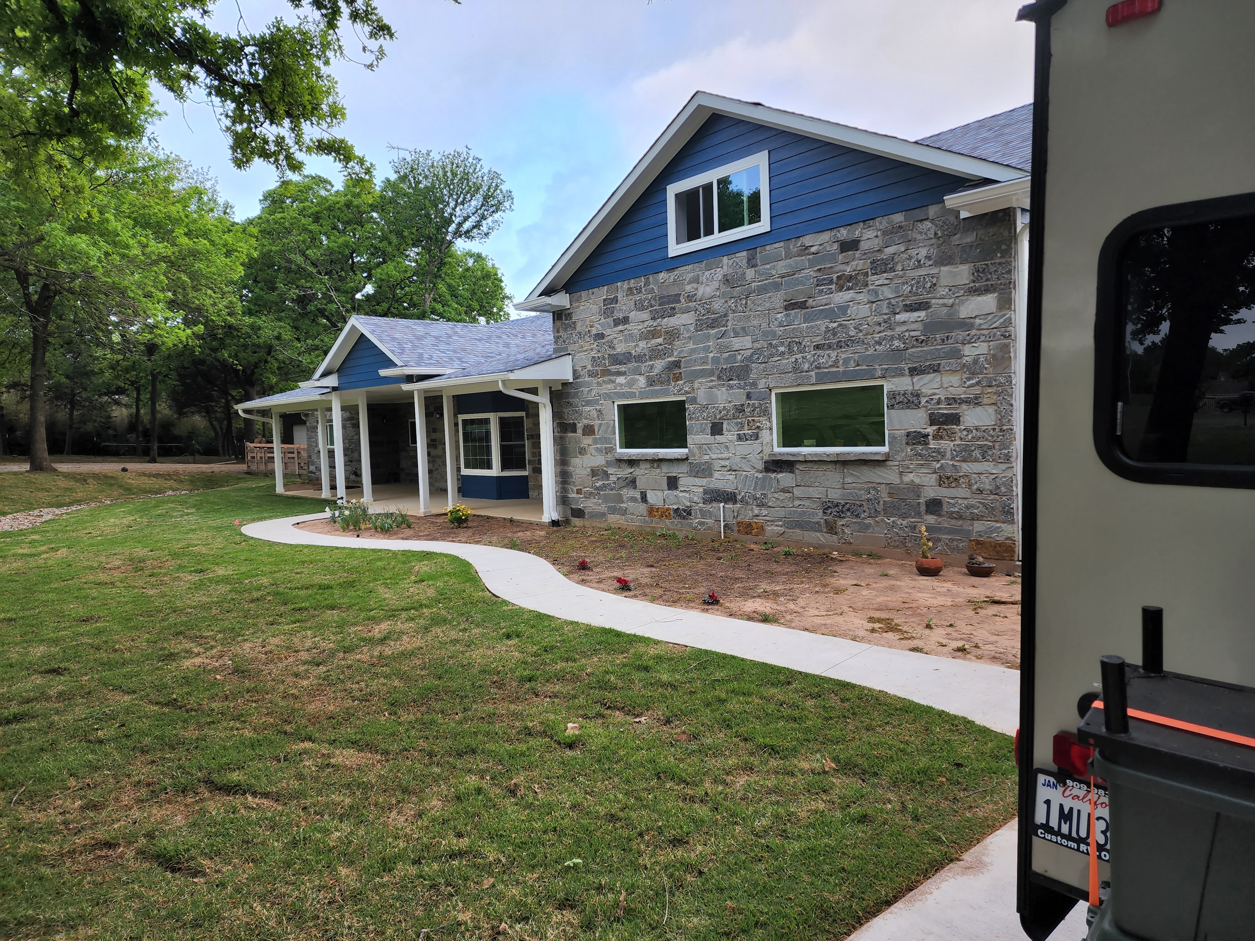 We left Amarillo at 7:30 a.m. on Thursday, April 21 as it was going to be a long drive to Denison. We made the 356-mile drive in about 6 hours, after stopping at a truck stop to stretch and have a bathroom break. Our reservations are at the Eisenhower State Park in Denison, which is about 15 minutes from my life-long friend Debi Humphries and her husband Terry’s home. They retired and moved to Texas last year. When looking up the address to Eisenhower State Park I realized I had made the reservation for Friday and not Thursday. I called and the park and the site I reserved was not available until Friday, but no worries, Deb and Terry had a nice long driveway and we “mooch docked” with them on Thursday. It ended up being great and we had a nice visit and went to a great rib place in Denison for dinner.
