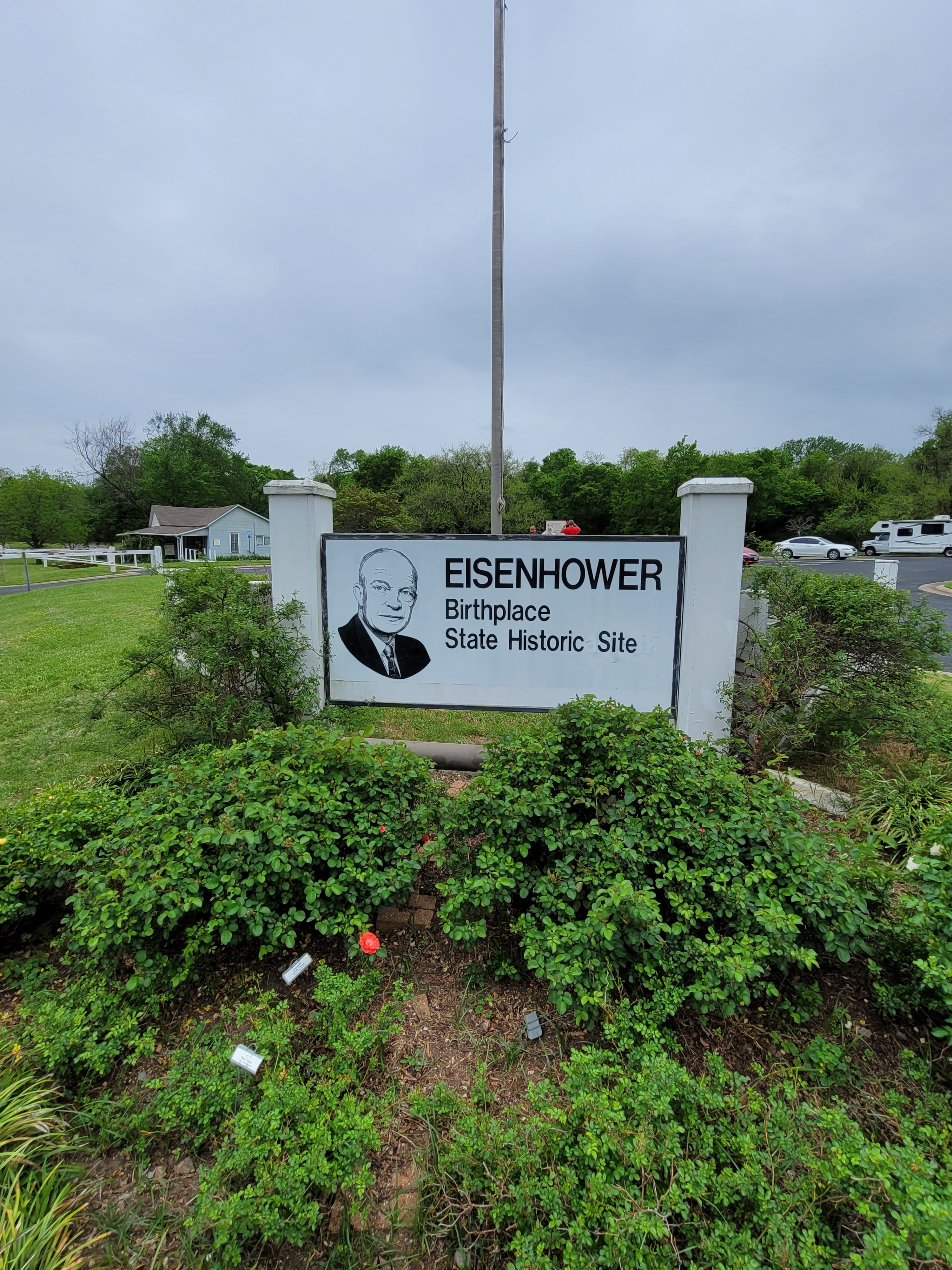 Debi had made plans for us to go to Ft. Worth to the Stockyard and a rodeo on Saturday. We left for Ft. Worth around 12:00 noon and on the way to Ft. Worth we stopped at Buc-ees, which is basically as travel stop and fuel station but also a destination for everything “Texas”. It’s 1 1/2-hour drive from Denison to Ft. Worth and I really didn’t know what to expect at the Stockyard, except we were also going to a rodeo. When you don’t really know what to expect it often turs out the best. We saw long horn cows come down the main street, shopped at some cute shops and had a great steak dinner at Riscky’s Steakhouse before heading over to the rodeo. It was a great day in Ft. Worth. We decided to sleep in on Sunday morning and meet Deb and Terry at the President Dwight D. Eisenhower’s birthplace. We took a tour and some photos and learned about the area when President Eisenhower’s family lived there for a while. After that we said goodbye to Deb and Terry and headed back to the trailer, a strong thunderstorm was forecast, and they weren’t kidding. Texas definitely does everything big – even their thunderstorms! We packed up on Monday morning and headed to Tulsa, Oklahoma.