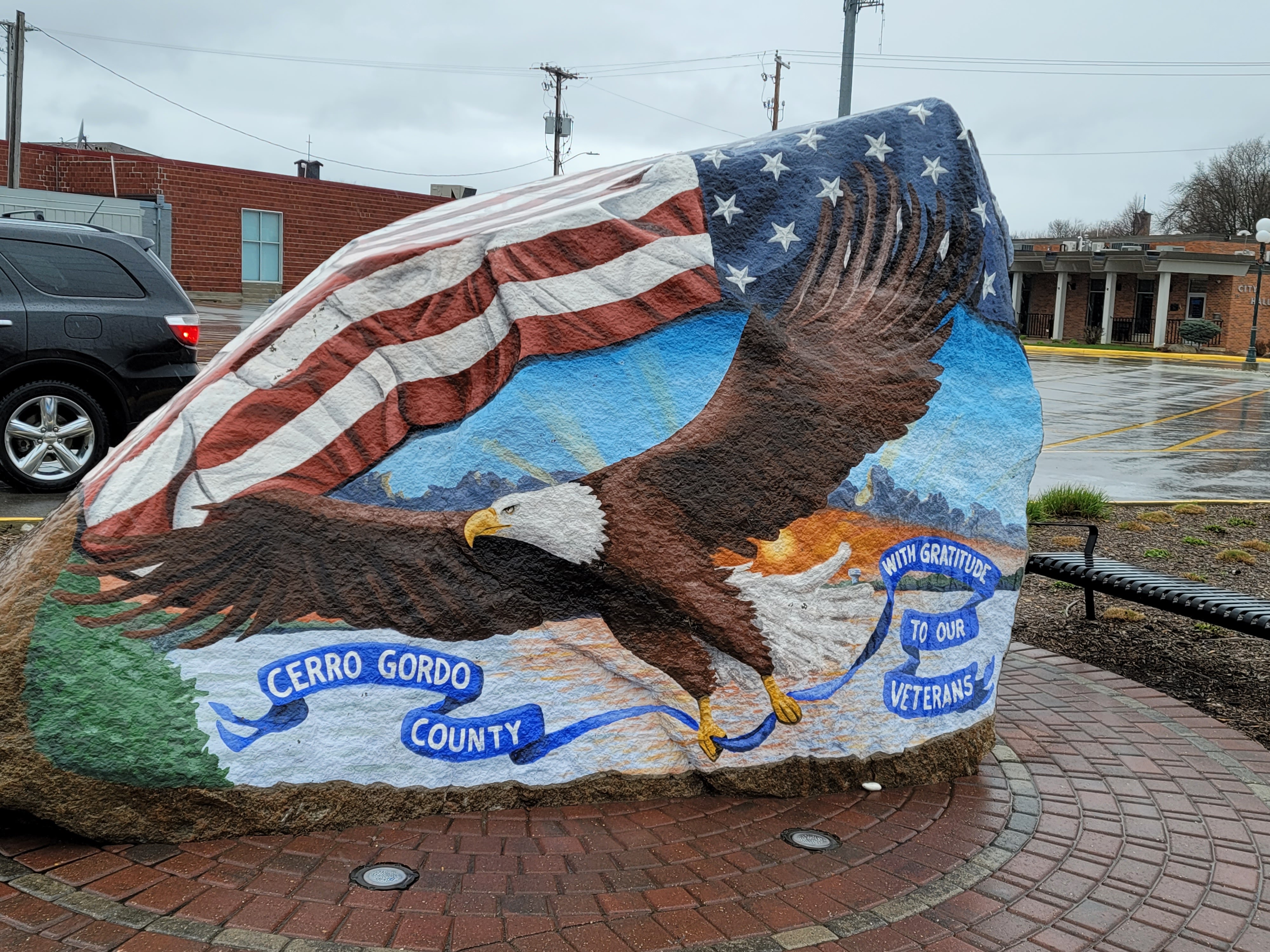 Saturday, we had planned on going to get some groceries and find a laundromat, however Jodi invited us to use their laundry. While I was doing the laundry, Tom decided to go to Ft. Dodge to Walmart as he needed DEF for his truck (again!) Jodi said we should all go to the one in Mason City, I think because there is a Mexican restaurant right near it! Now everyone has said you can’t get good Mexican food outside California and Arizona, but that is just not true. I had street tacos that were delicious, and the salsas had a nice kick to it. Tom’s enchilada was good, and his tamale was ok and although the margaritas were a little sweeter than we like, they were still good! On our way back, Jeff and Jodi took us by the local “Freedom Rock” which is a program in Iowa where each county has a rock that has been painted by a local artist. Each rock has a patriotic theme and the one we saw was just beautiful. Look in the photos for what I’m talking about. We finished the afternoon with some more cards and drinks, while the laundry was finishing.