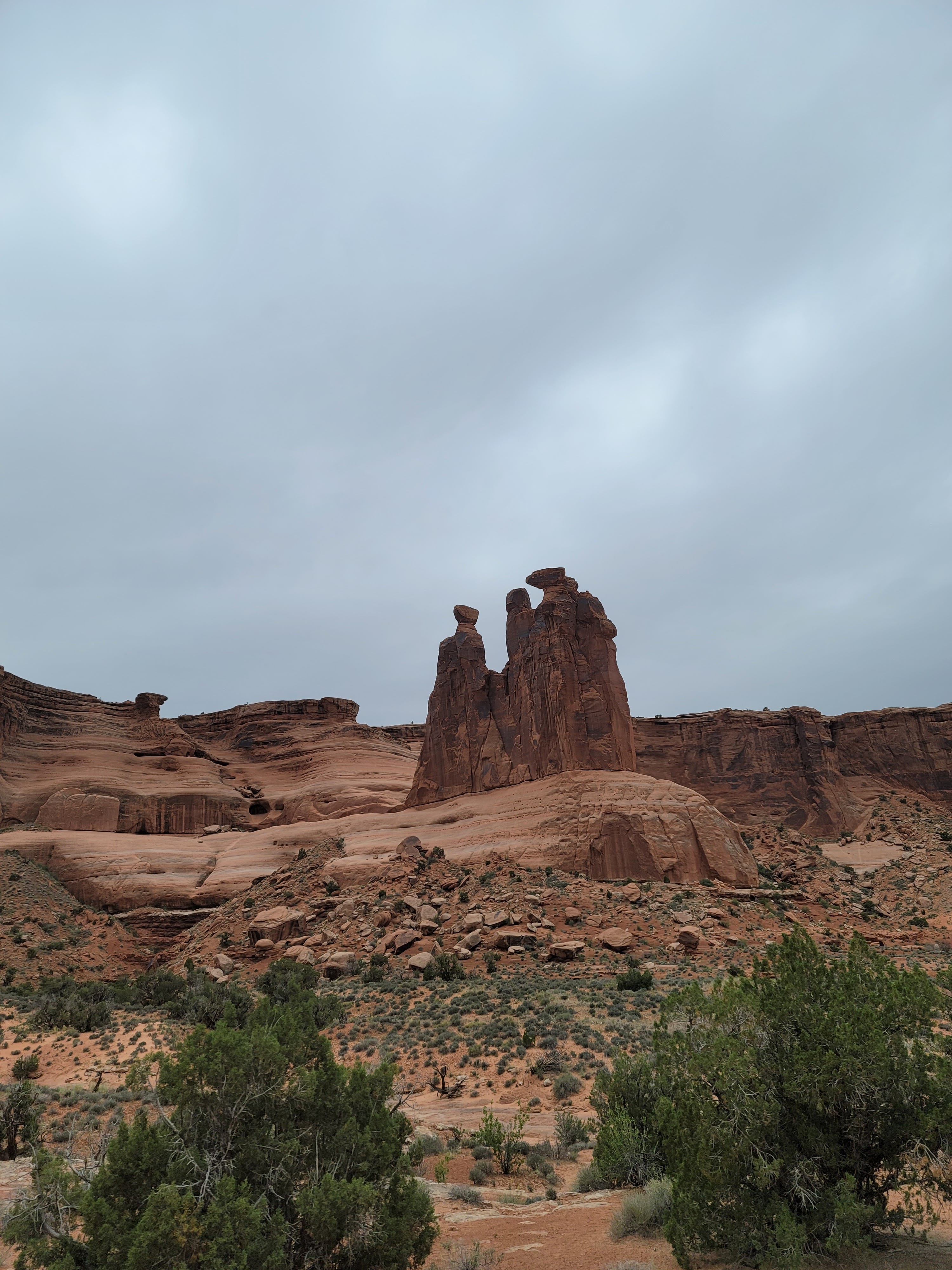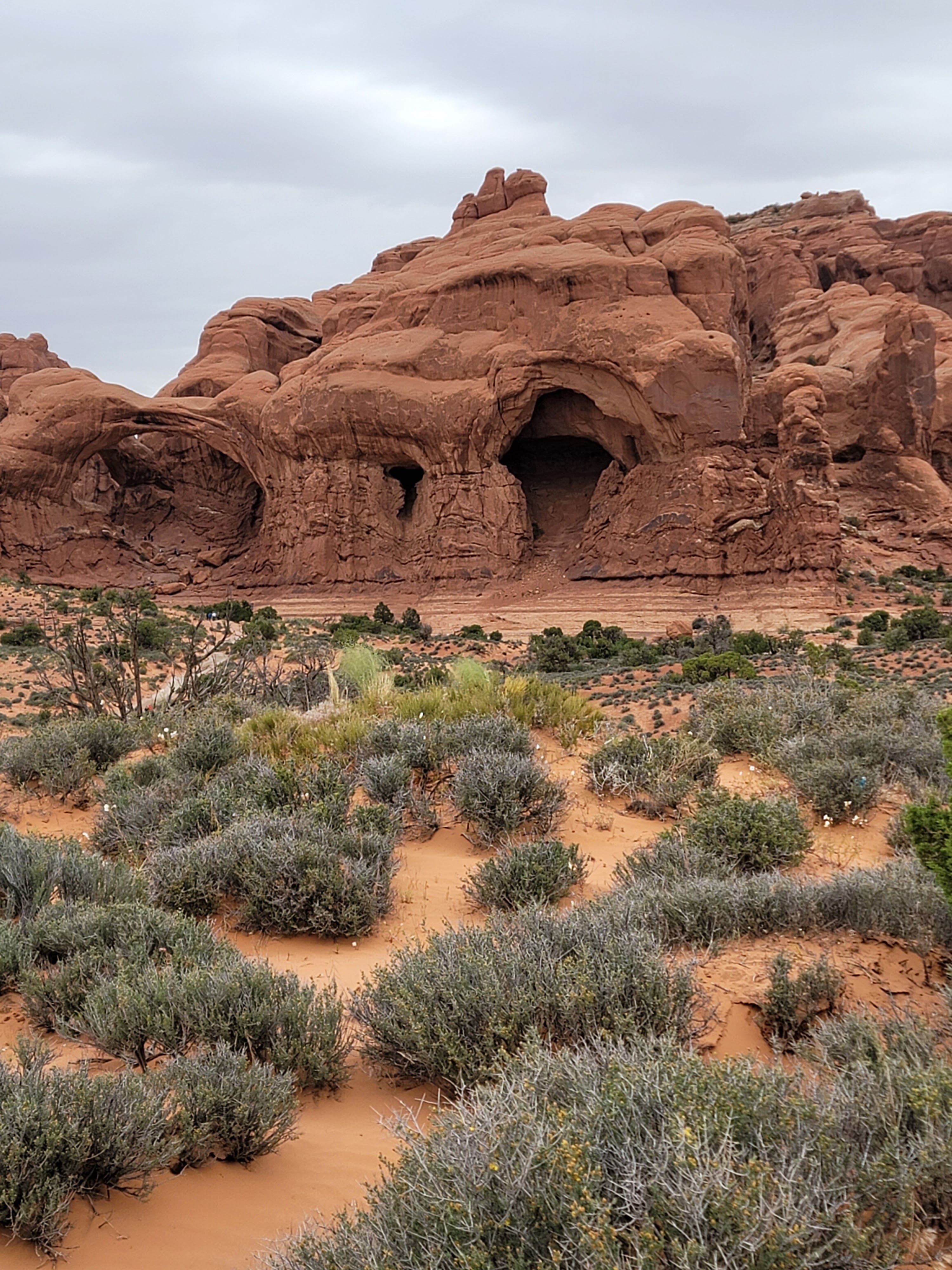 The wind blew hard all night, and Friday morning it was still pretty breezy. I’m beginning to understand that 20 mph winds is just a breeze! We left for Arches and got there about 7:45. Because there was no one in line, we got in a bit early. I have learned that getting to National Parks early is a good idea, we were able to hike to many of the arches and although the sky looked threatening it never rained. It did stay pretty windy all day.