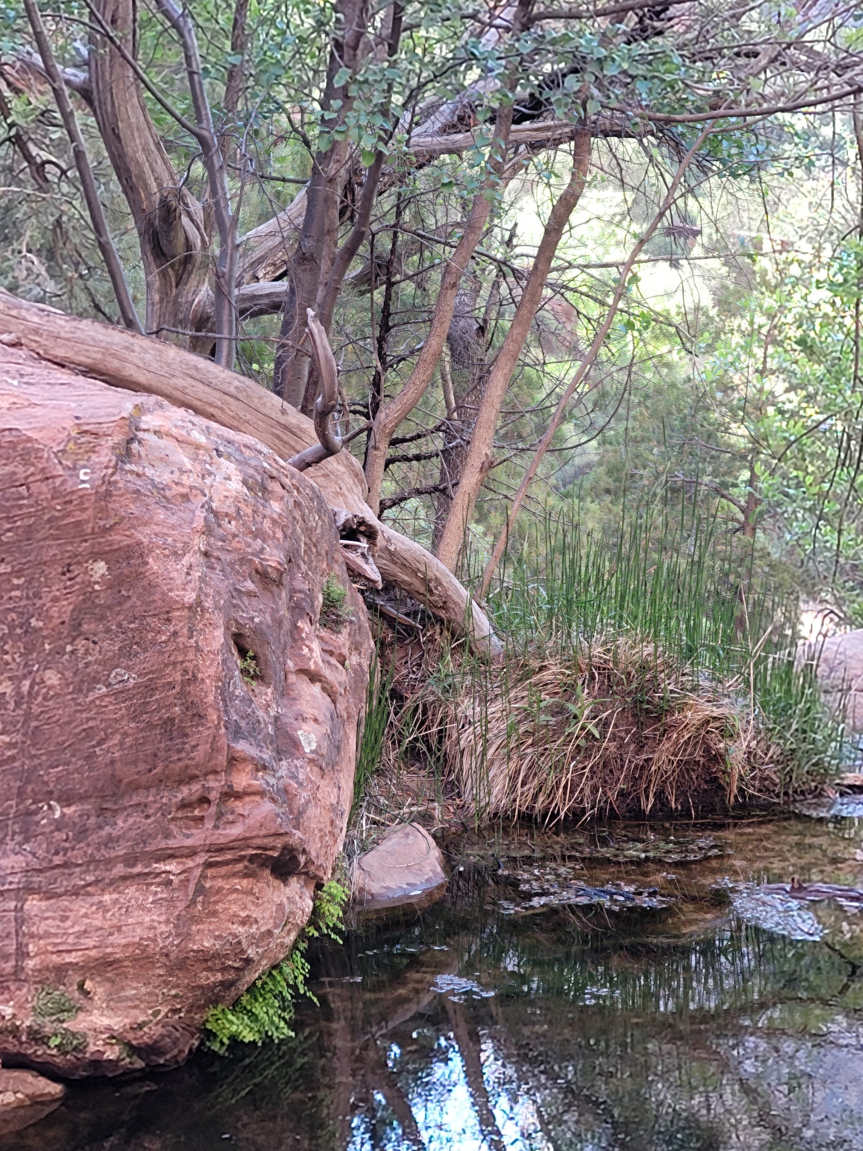 We booked a 7:30 time on the shuttle from the campground, with the only caveat being that you need to be back at the shuttle at 1:30 p.m. so you have to watch your time. It’s pretty amazing how each national park operates differently. If you want to hike in Zion you walk into the park and take a shuttle which has 9 stops. There are hiking opportunities at each stop, and they handed out maps at the entrance that indicated the difficulty of each hike. We chose to hike the emerald pools, which was listed as an easy hike. Well….once we reached the lower pool, we decided to keep going without looking at the map and it was quite the hike! Once we made it back and checked, it was listed as a medium hike which made us feel so much better, because if that was an easy hike, we were in really bade shape!