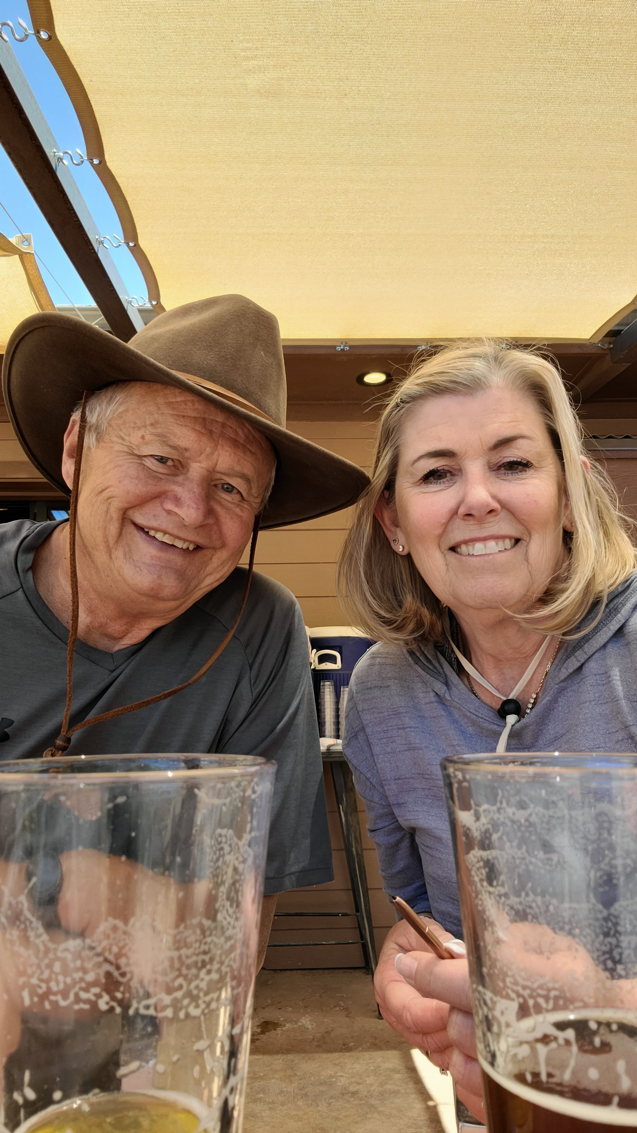 The couple parked next to us at the campground, Kim and Bruce Goff were also on the shuttle with us. After hiking we agreed to meet at 5:00 for drinks and visit some more. We had originally met Kim at the laundromat the day before so meeting for cocktails was a perfect idea. They are from Massachusetts and were a lot of fun. We decided to take the shuttle the next day and then meet for lunch. We shared address and phone numbers and will keep in touch with them and hopefully either we’ll get to Massachusetts, or they’ll get to California.