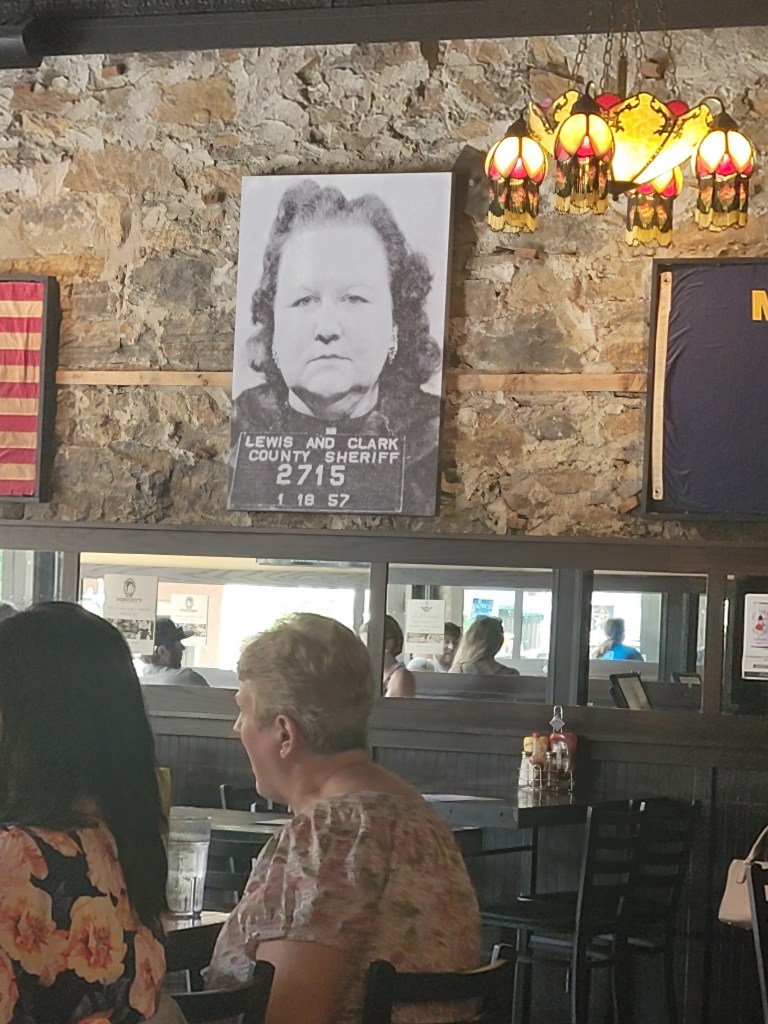 On Monday, Tom got the oil changed on the truck and that shouldn’t have to be done again until we get home. We met up with the Martinizes (Rick and Yolanda and Danny and Judi). They are in our Breezy Elks camping group and are the ones that helped us get on this trip. We ate dinner at a cute pub that was the last brothel in Helena!  The Martinizes left for Browning (our next stop) on Tuesday morning, and we will meet them and the rest of our caravan there on Wednesday.