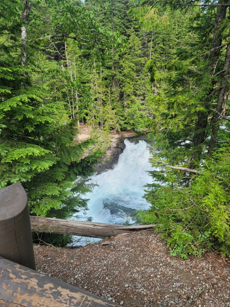 Friday was much nicer weather, and we went to Glacier National Park with Rick and Yolanda Martinez. Our plan was to hike to Avalanche Lake and we left early enough (we thought!) The drive on the Highway to the Sun was beautiful with lots of waterfalls, but once we got to the trail head, there was no parking anywhere. We decided to drive past the trailhead, see more of the park and try again on our way back. The problem with that idea is that there were still no parking places on our way back! This is apparently one of the most popular hikes in the park, and we couldn’t find another one to hike, so we headed back to camp. Let me stress that the drive itself was beautiful and we all believed we will have plenty of hiking opportunities during the next 11 weeks. Yes, you read that right, we have already been gone one week!