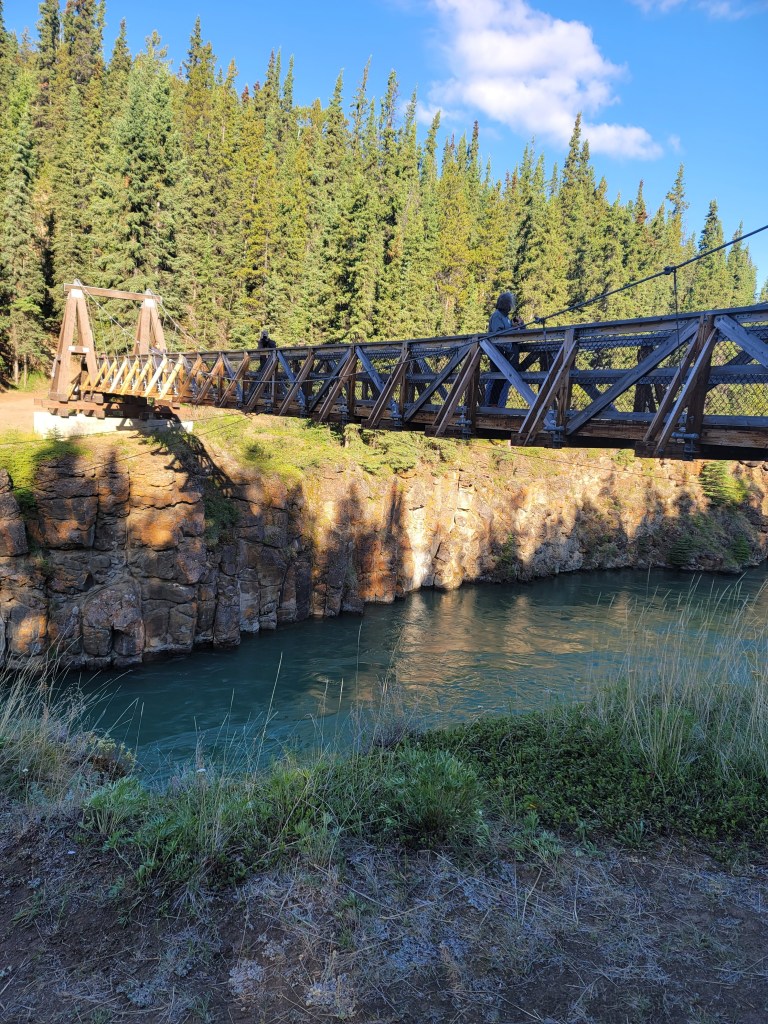 We took a bus tour of the city of Whitehorse on Friday, June 30. The trails and the Whitehorse River were truly beautiful. We had the BEST guide, basically because she was amazing, her name is Patti AND apparently, we both talk with our hands, regularly knocking items over and occasionally smacking the person sitting next to us. We saw things on the tour that we definitely wanted to go back and visit. So, after the tour Danny and Judi Martinez picked us up and we went back into town. First, we headed to a glass blowing shop called Lumel Studios. I bought two beautiful wine glasses and one of our friends had a water bottle designed. The glassblowers will create it in the next few days and he’ll pick it up on our way back through Whitehorse in August. The fun thing about Lumel Studios is that they had a little café attached and we had a delicious lunch. As usual, we ran into some other caravan members and because seating was limited, we joined them and all six of us enjoyed lunch and a local craft beer.