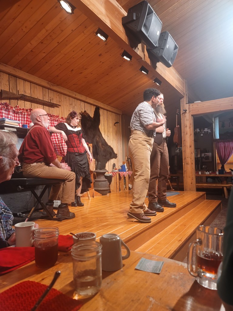 Denali (the city) is a quaint little place with lots to do. Our first night there we went to dinner and a “Cabin Night Theatre”. All the wait staff were also the entertainment. They sang, told stories of the “old days” when the gold rush was in full swing. It was so much fun! The food was served family style and was delicious, ribs and salmon along with vegetable, salad, and baked beans.