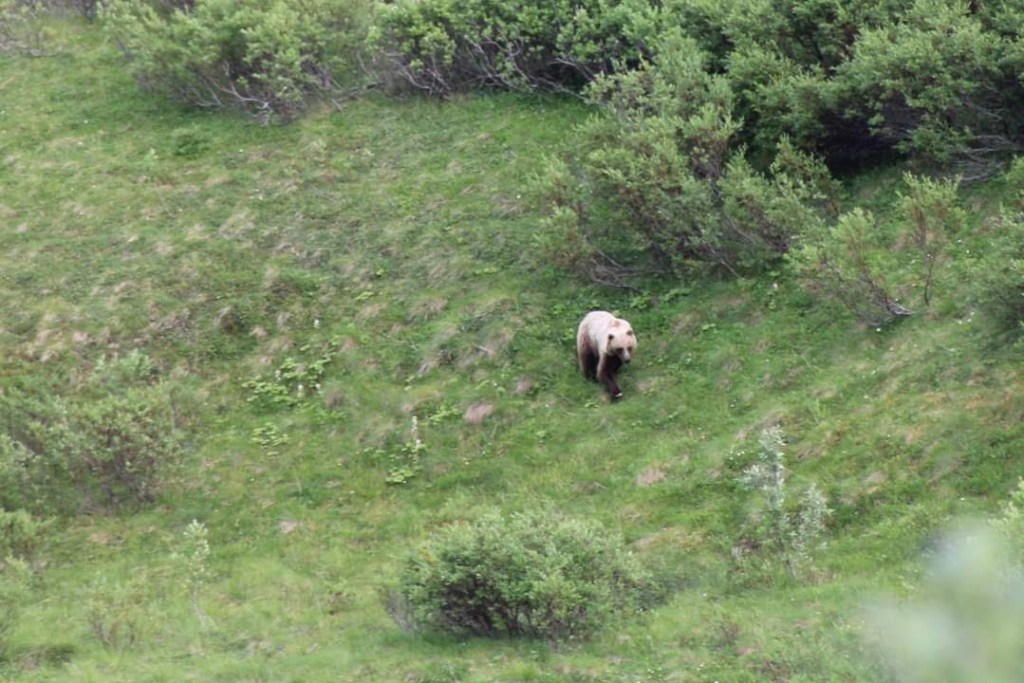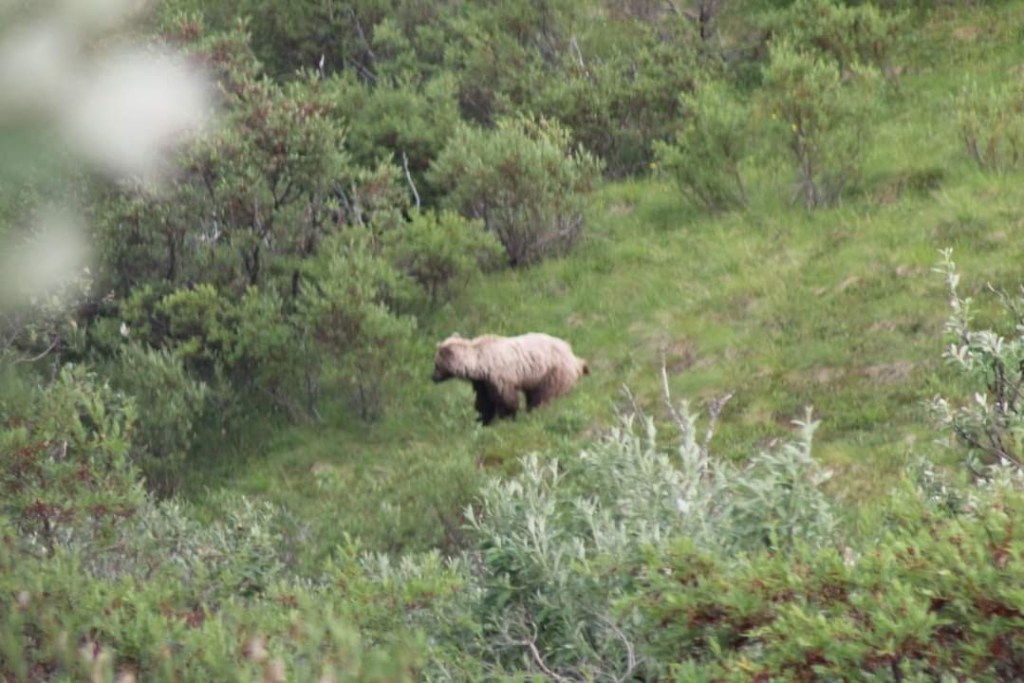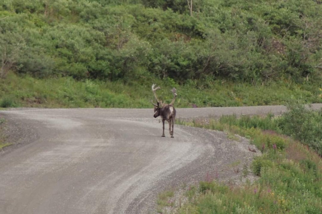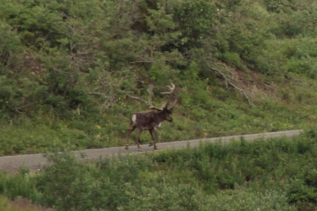 Along with the one road in Denali Park, there is also only one bike trail, which is about 1 mile long. You can, however, bike on any road around the visitor center and even the one road in the park. The only problem is there is no bike lane. It was scary! We biked for a bit and then decided we were safer taking the bus into the park. On the day we took the tour the mountain was hidden from us. Only about 30% of visitors to Denali actually get to see the mountain, as it is often covered in clouds. We did get to see a grizzly bear, and a caribou. When you look at the photos, I did not take those two, my friend Diane is a better photographer, and was better positioned on the bus! It is all about timing and luck.
