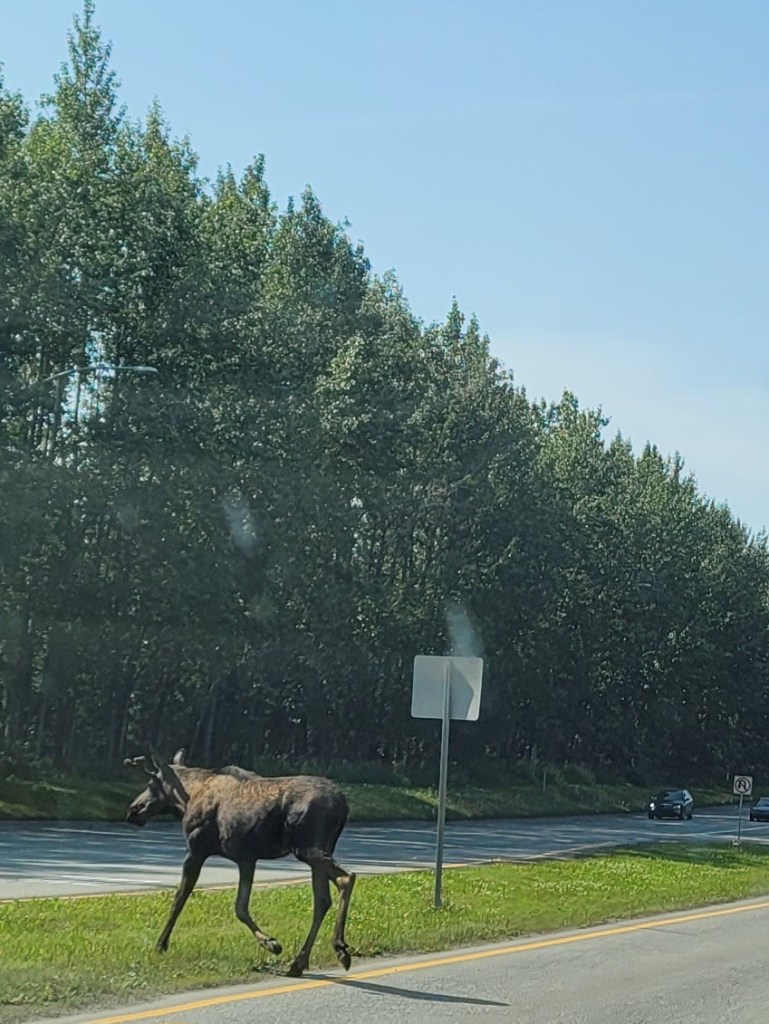 Oh! But the fun news? We saw a moose; he crossed the road right in front of us on our way to drop off the trailer! Anyway, I’ll update the rest of the story when we get to Valdez.