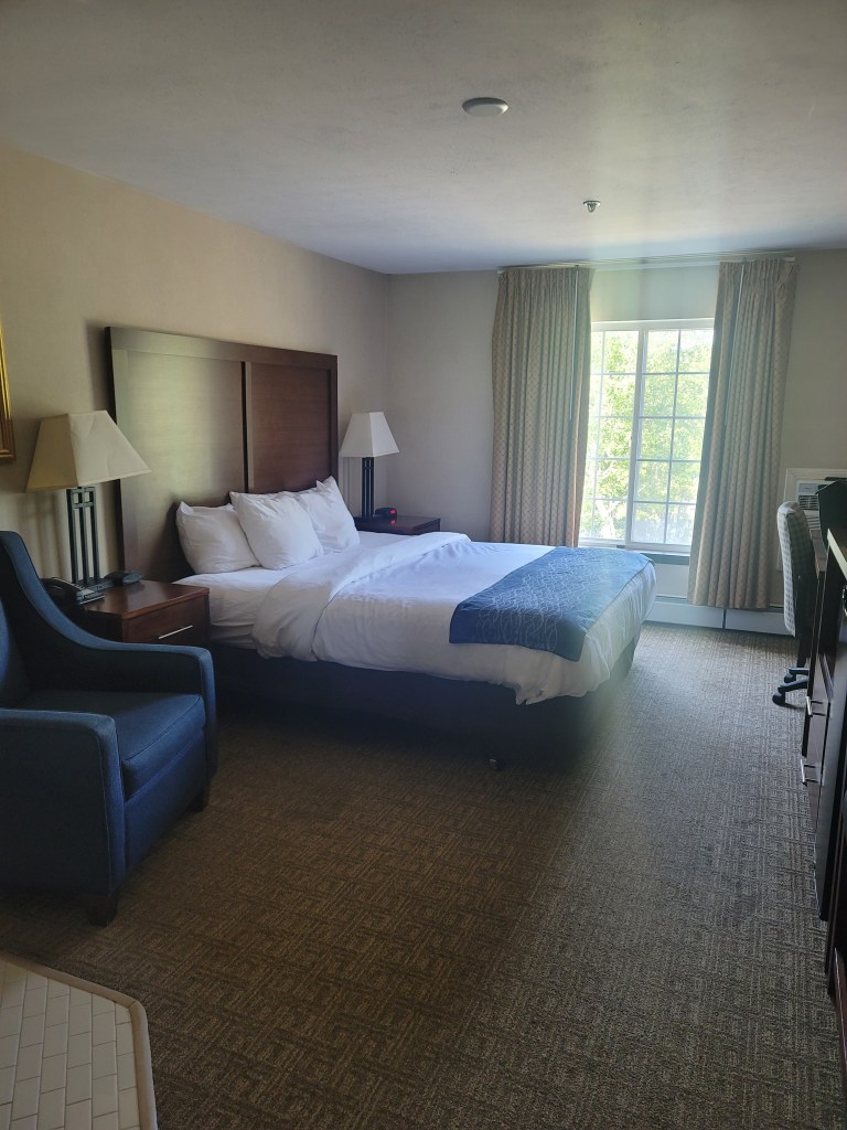 Anyway, we get to the shop and the service guy tells us they can’t work on it until tomorrow morning! We reminded him that we were told the night crew could work on it this evening and he agreed but cautioned us it may not be done tonight. We grabbed some clothes and made a hotel reservation. By this time, it was 3:00, we were hungry, so we grabbed some food then headed to the hotel. Our hotel is on Ship Creek Road, Tom has decided we are up Ship Creek without a paddle!